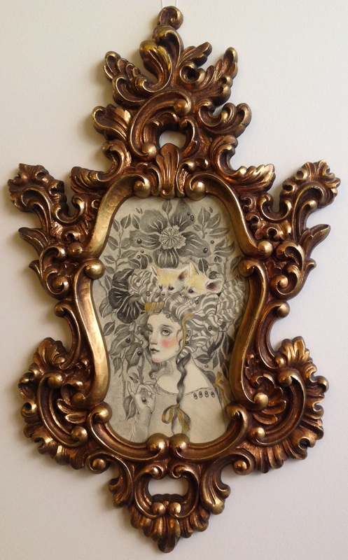 7″ x 5″, 15″ x 9″ with Antique Frame, Graphite, Pastel on Moleskine