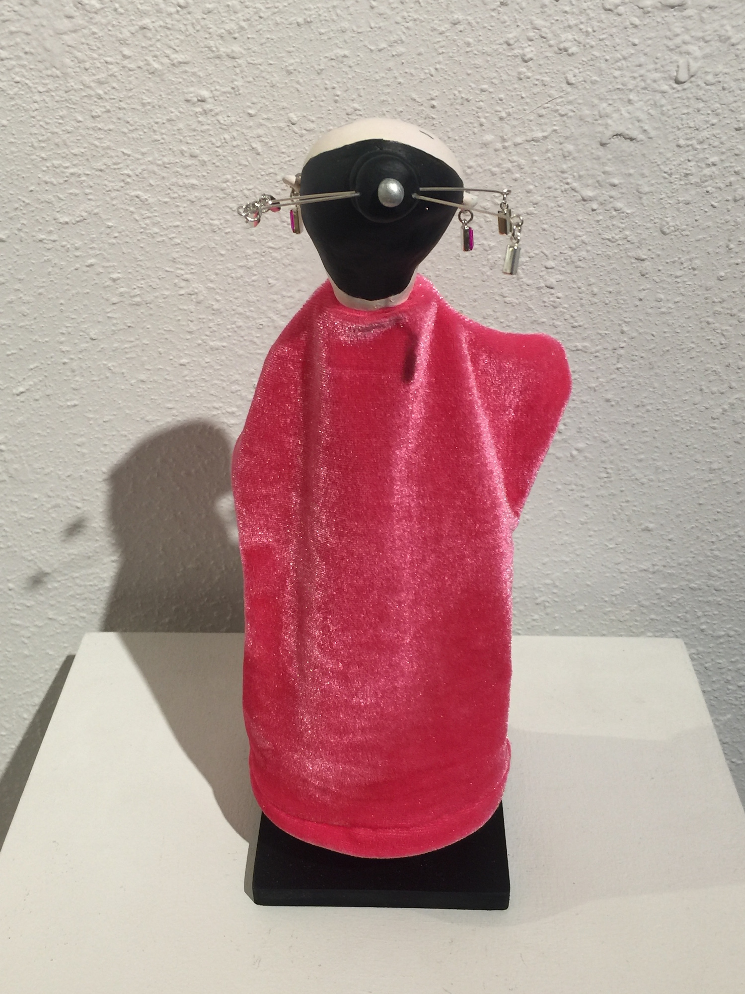 Puppet – Fabric, Sculpting, Resin, Paint, 10.5″ x 6.5″ x 3.75″, 11.5″ x 6.5″ x 4″ with handmade stand by the artist